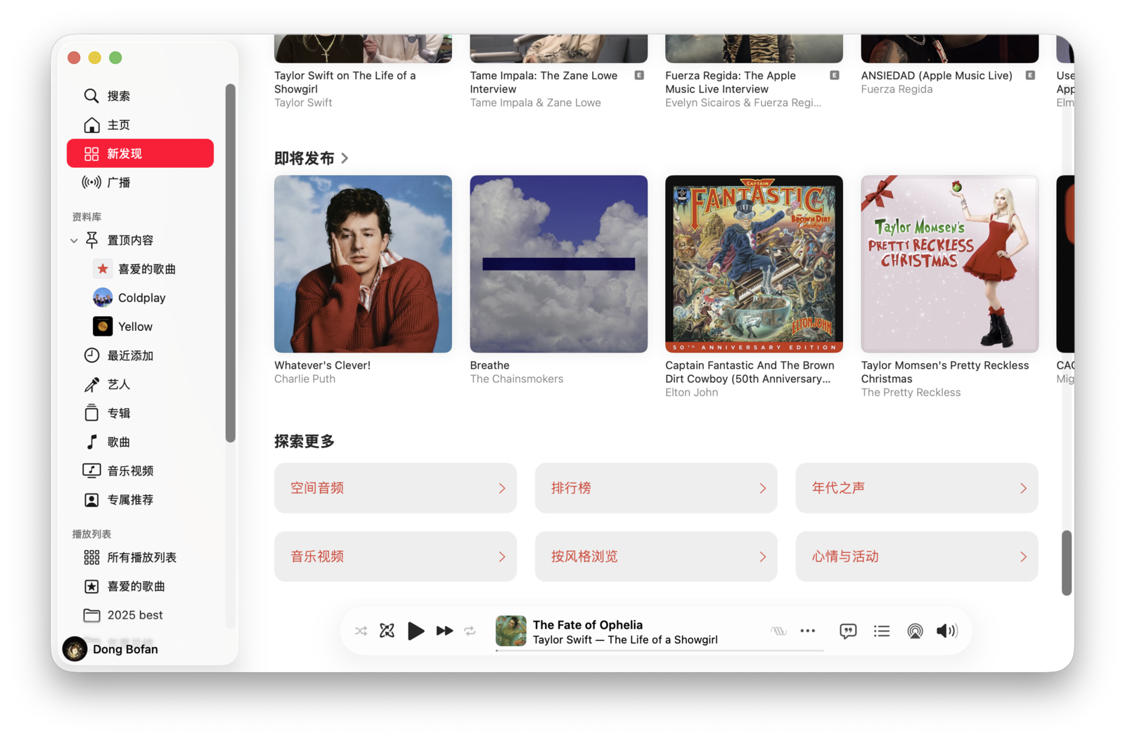 与根据个人喜好调整的「现在就听」不同,「浏览」标签页更多呈现的是音乐圈的动态信息,例如新歌发布、热门排行榜、由音乐专家创建的播放列表等。下面介绍几个较为独特的分栏。