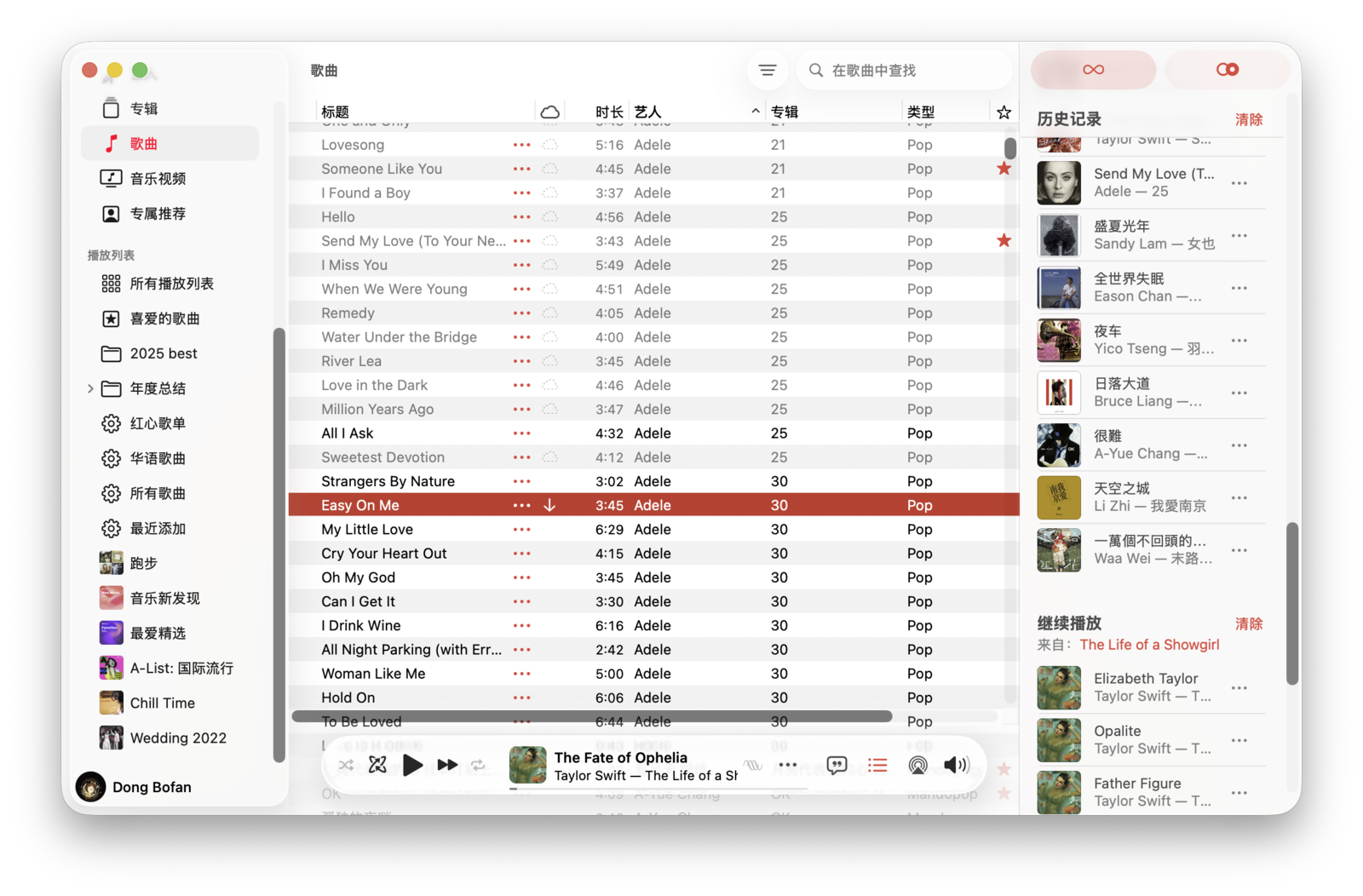 到了流媒体时代,「资料库」可以简单理解为不同列表的集合。例如,「歌曲」列表就类似于其他音乐应用中的「我喜欢」或「红心歌单」。