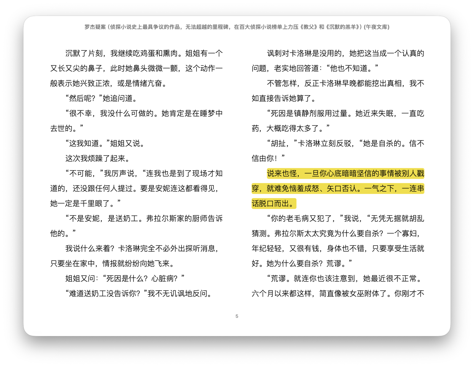 阅读 EPUB 格式的电子书时,你会感觉像在阅读一本纸质书。界面上只显示书名、页码等必要信息,只有当鼠标移动到窗口顶部时才会显示工具栏,为你提供沉浸式的阅读环境。