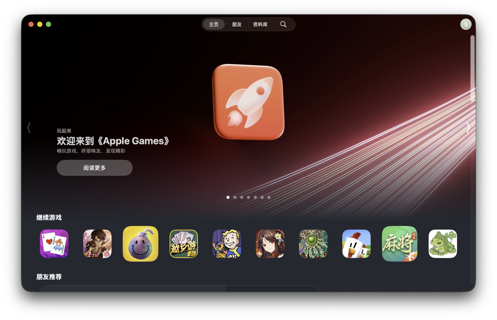 在新版 macOS 中,苹果推出了一款名为「游戏」的全新系统应用。这款应用聚合了游戏推荐、好友互动、资料库等功能,相当于为 Mac App Store 中的游戏打造了一款苹果版的 Steam 客户端。