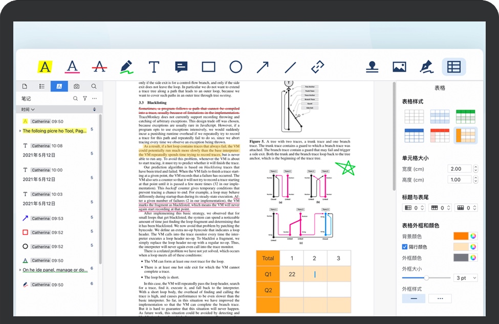PDF 注释器使用一组经典的注释工具标记 PDF,例如 PDF 荧光笔、删除线、手绘和注释 PDF,并使用文本框、粘滞便笺、图章、图像等进行审阅。