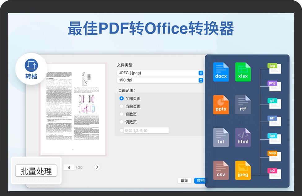无需从头开始重新创建文档。使用最好的 PDF转换器,您可以快速将 PDF 导出为 DOCX/PPTX/XLSX 等,保持字体和布局完整,包括项目符号和表格。
