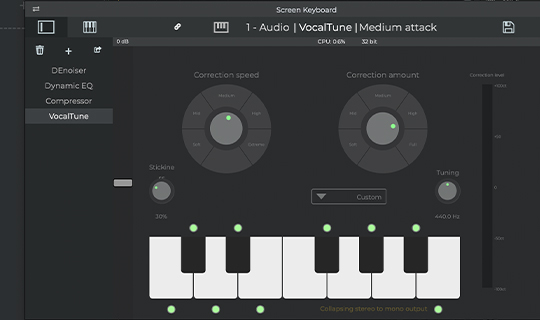 内置效果从 VocalTune 到 Convolverb,从 DEnoiser 到放大器 |