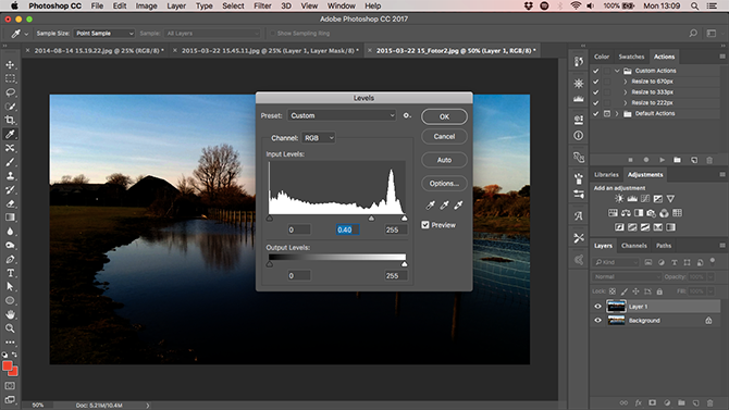 现在,使用“海绵”工具使眼睛变亮。保持微妙,然后使用“不透明度”滑块微调效果。 使用渐变ND滤镜将戏剧添加到天空您无法始终控制拍摄条件。这尤其适用于天空。在高对比度的场景中,天空经常会曝光过度,或者在阴天时,画面顶部会出现无聊的灰色阴影。 解决此问题的最佳方法是在相机镜头上安装渐变中性密度滤镜。如果您没有这些,则可以在Photoshop中非常轻松地伪造效果。 首先复制图像层。然后在Windows上按Ctrl + L,在Mac上按Cmd + L打开“色阶”工具。(您需要将此特殊调整直接应用到图层,因此不要像以前一样从“调整”面板中选择“色阶”。)